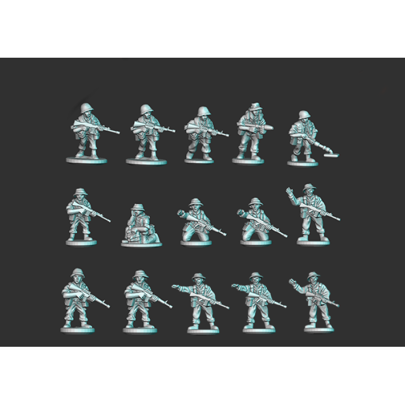 Contains 9 digital models for 3D printing: Vietnam Era ANZAC Infantry Section 1x Sectio..
